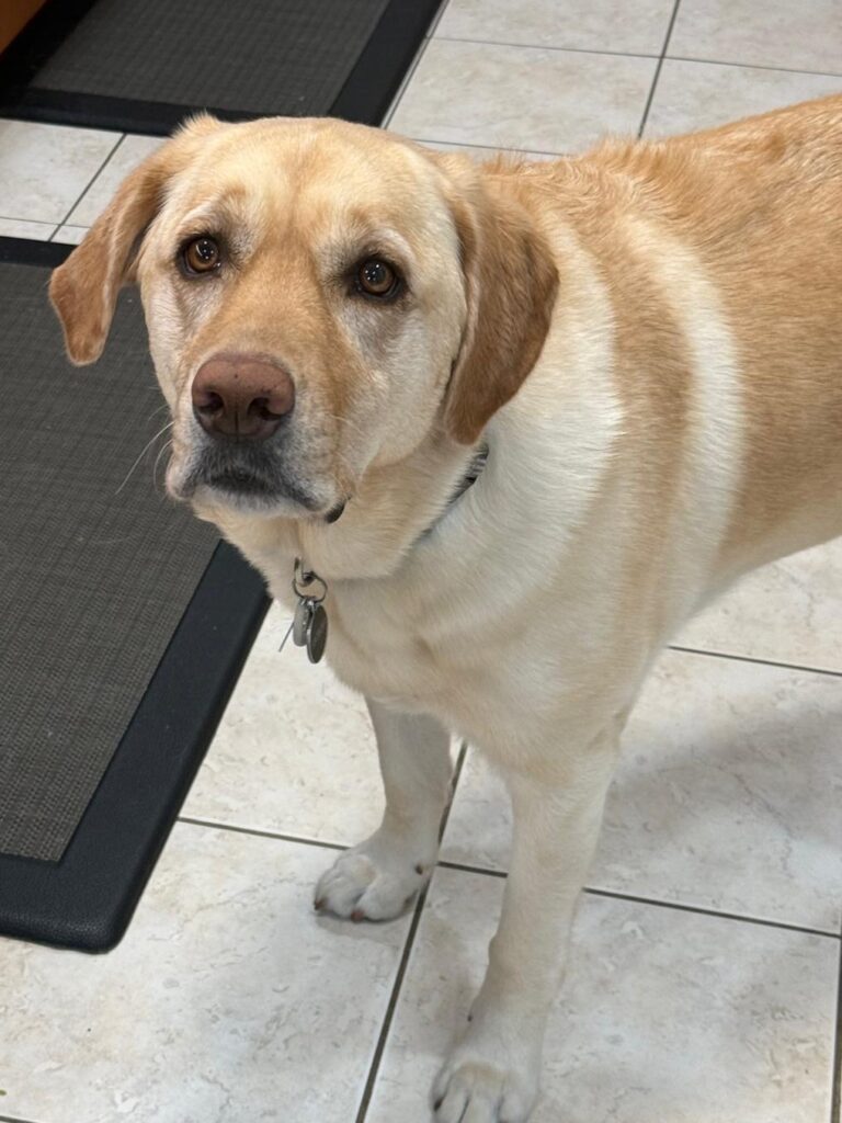 Piper wasn’t wearing her collar—she never does overnight because we take it off when she goes into her crate to give her neck a break.